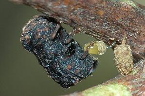 ハムシを撮影していると時々おかしなポーズをとっているハムシに気がつきます。